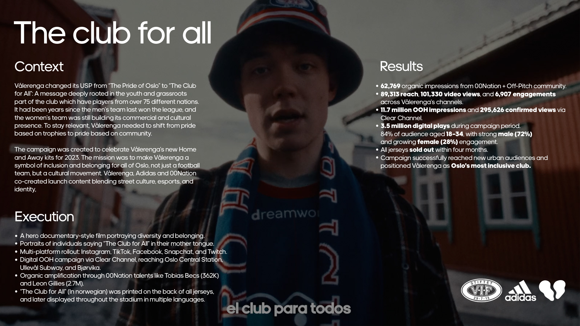 To celebrate the diversity within the club we created “The club for all” campaign for our 2023 kit release, in collaboration with adidas and 00nation.